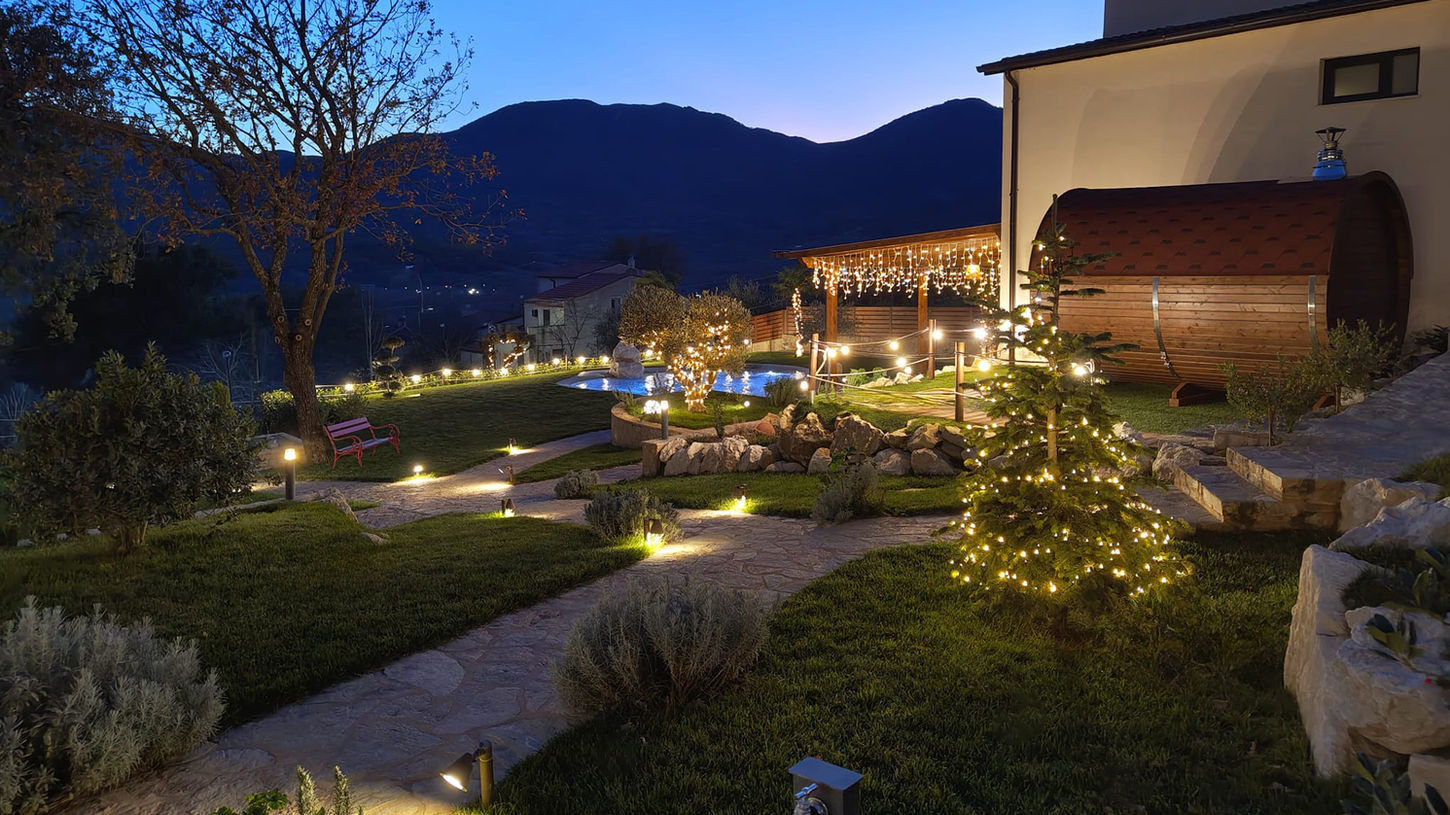 Avrete a disposizione, solo per voi, la sauna finlandese a botte, le docce esterne calde e fredde, la bio-piscina, il suggestivo pozzo del fuoco e un ampio giardino curato, tutto da vivere in completa autonomia.