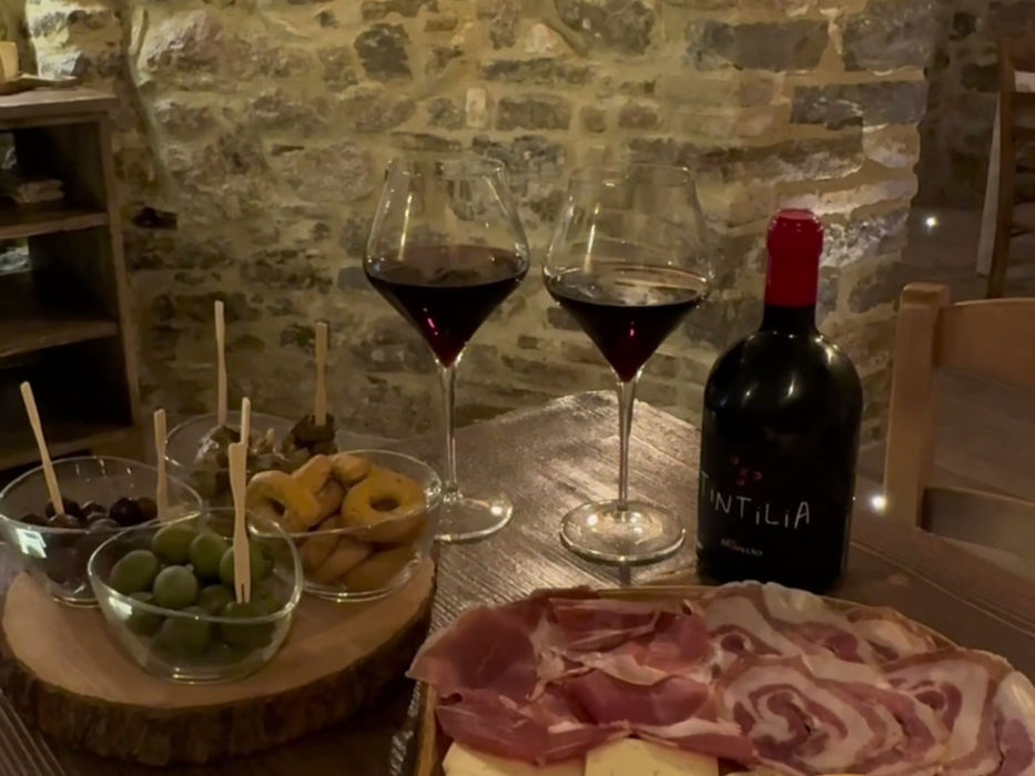 Arricchisci la tua esperienza e regalati un momento intimo tra pietra e calici. Potrai scegliere di accompagnare la tua serata con una degustazione salumi, formaggi tipici e vino locale, tutti prodotti selezionati da eccellenze del territorio, da condividere nella nostra esclusiva cantina in pietra.